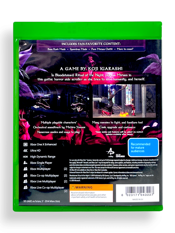 Excellent Condition & 100% Complete with Contents: BLOODSTAINED RITUAL OF THE NIGHT for XBox One. This preowned game is in superb condition and comes complete with case + cover + game disc.