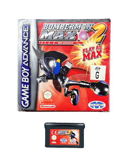 Boxed Nintendo Game Boy Advance game in good condition: BOMBERMAN 2 MAX / BOMBERMAN MAX 2 RED ADVANCE for Nintendo Game Boy Advance (Gameboy Advance). This preowned game is in good condition and includes pictured box + game cartridge.