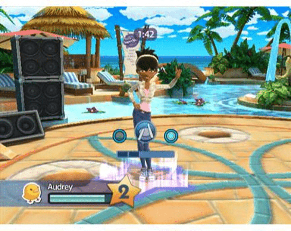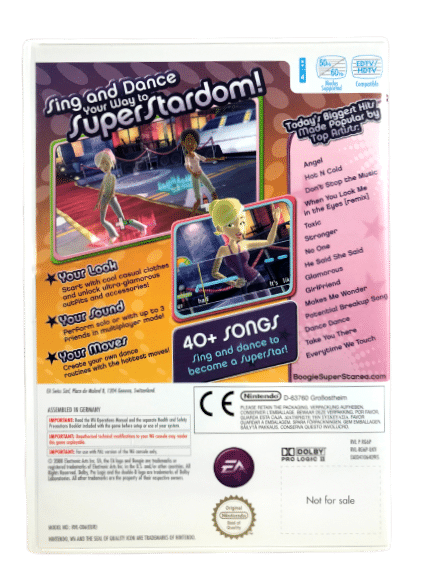 Be “discovered” and whisked away to a secret, tropical island where you learn what it takes to be a star. Customize your character to create a performer who represents your unique style. Build your singing and dancing skills by performing in posh environments fit for a star. Have a blast playing with or against your friends, belting your favorite tunes into the microphone, and performing real dance moves that are captured on screen using the Wii’s motion-sensing technology. Once your skills are perfected, perform for the judges in the ultimate competition, the Boogie Star Show!