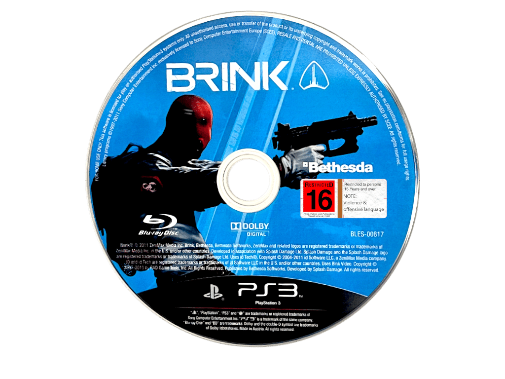 Brink (PS3). This pre-owned Sony PlayStation 3 game disc is in good condition and comes inside an empty blank case. Please note that the original case is not included here.