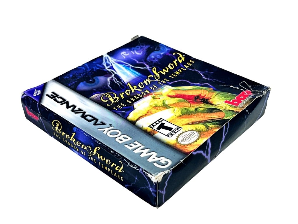 Boxed Nintendo Game Boy Advance game in good condition & complete with inner contents: Broken Sword Shadow of the Templars for Nintendo Game Boy Advance (Gameboy Advance). This preowned game is in superb condition and includes pictured box + manual / booklet + game cartridge. The box itself has cardboard damage as shown in photographs, but each of the internal contents are fantastic. The box has been protected inside a Game Boy Advance Box Protector (plastic box designed specifically to preserve the quality of GBA game boxes).