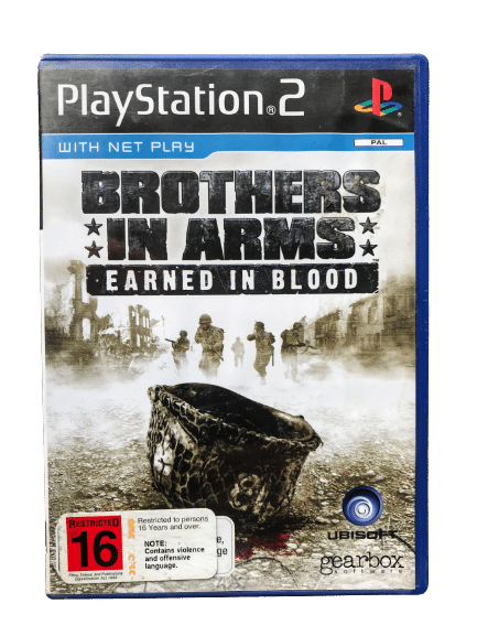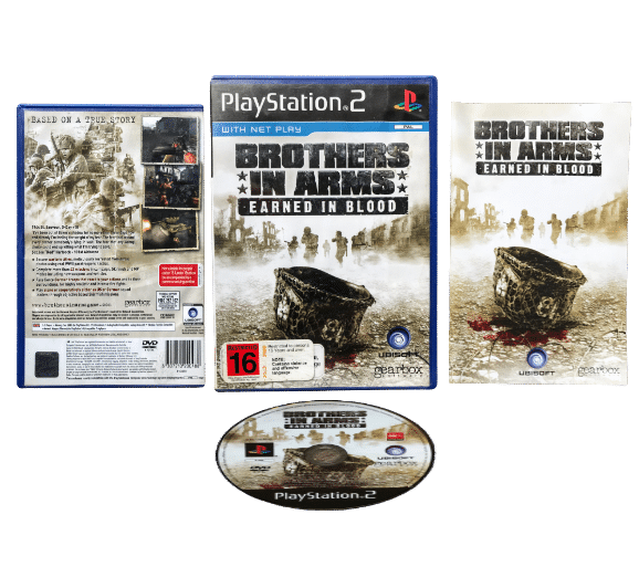 Brothers in Arms: Earned in Blood for SONY PlayStation 2 / PS2. This preowned game is in good condition with only mild markings and light scratches which do not affect gameplay or performance in any way. This game includes case + cover. The case has a small plastic chip on one corner, but this is purely cosmetic and does not affect its functionality in any way. NOTE: when stock reduces to only one (1) copy of this particular game showing in stock, the manual is no longer included.