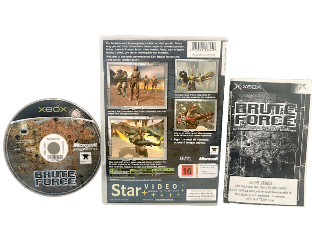 Brute Force for the original Xbox is a squad-based third-person shooter featuring multiple playable characters with unique abilities. A notable early Xbox exclusive, it offers cooperative gameplay and holds nostalgic value for collectors of original Xbox titles.