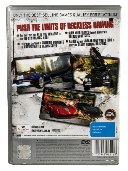 Push the limits of reckless driving and let adrenaline and danger take you to the edge in the most intense, challenging Burnout experience ever seen on PlayStation2 and PSP.