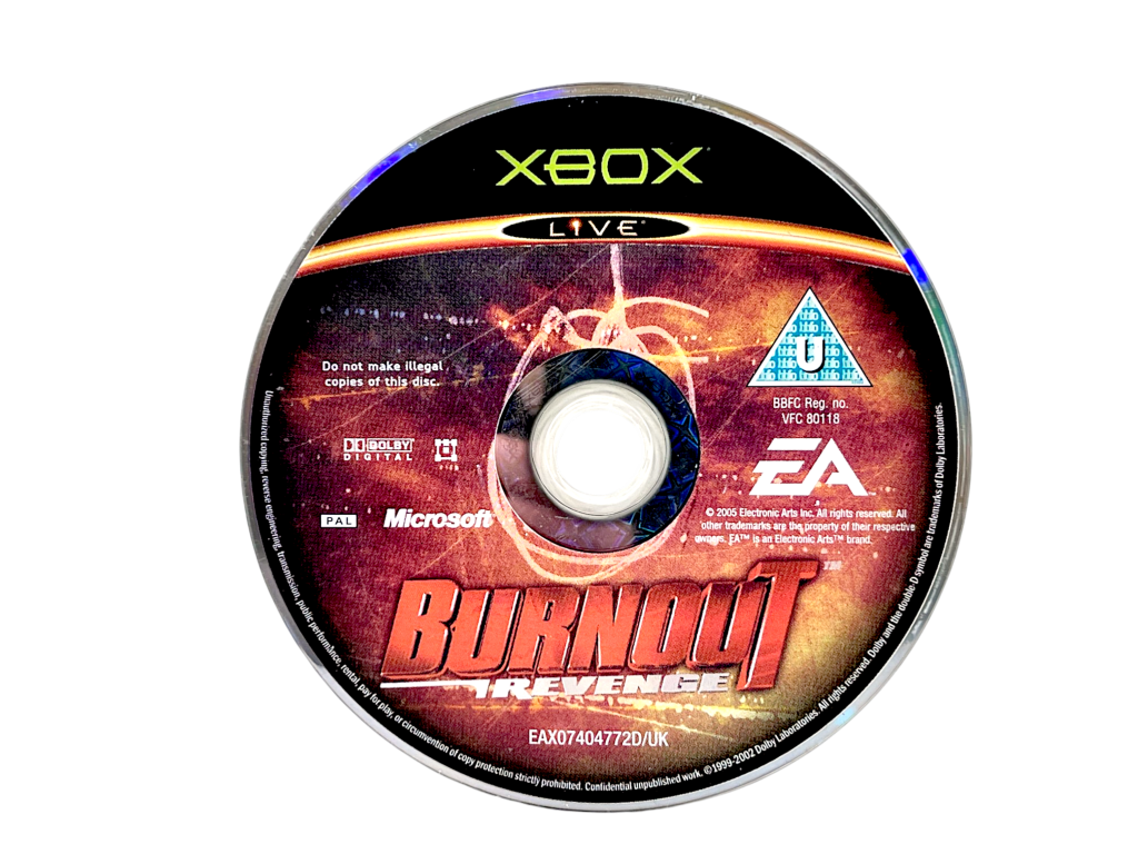 Burnout Revenge (Original Xbox) *DISC EXCELLENT*. This pre-owned game is in excellent condition with only faint disc surface imperfections, and comes inside an empty blank case. Please note that the original case is NOT included.