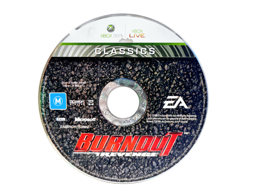 BURNOUT REVENGE for Xbox 360. This preowned game is in good condition and includes case + cover + game disc. Some very fine superficial markings / ghost scratches, but these are purely cosmetic and do not hinder game play or performance in the slightest. Please note that the manual is not included in this listing, but the game is self-explanatory, and the instructions are readily available online.