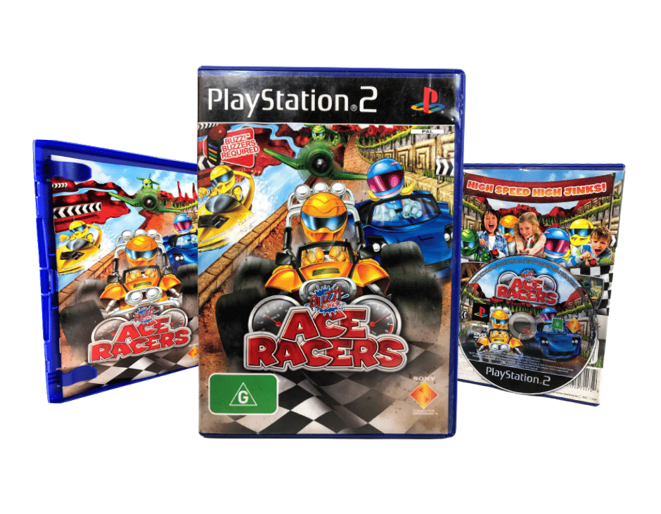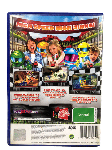 COMPLETE BUZZ JUNIOR PLAYING BUNDLE (GAME + BUZZERS)! BUZZ JUNIOR ACE RACERS The Game PLUS Official Buzzers / Buzz Controllers to play! This preowned genuine SONY PlayStation 2 / PS2 Buzz Junior Bundle is in good condition and perfect working order. Game comes complete with case, cover, manual / booklet, and game disc. Faint markings and ghost scratches on disc, but these are extremely minor imperfections which do not hinder game play in the slightest. Game disc is in very good condition and and plays perfectly. A complete player’s bundle, ready for the kids or entire family!