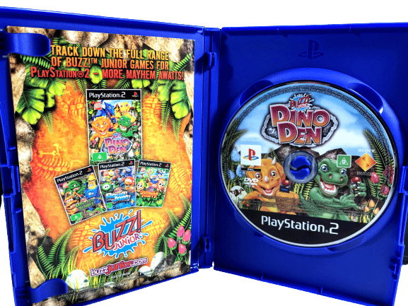 Excellent condition & 100% complete with contents: BUZZ JUNIOR DINO DEN / Buzz Junior DinoDen for SONY PlayStation 2 / PS2. This preowned game is in superb condition and comes complete with case, cover, manual / booklet, and game disc.