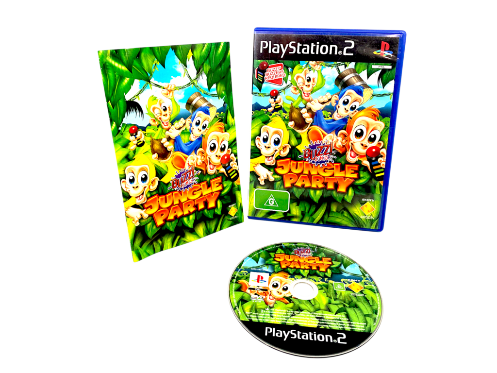 BUZZ JUNIOR JUNGLE PARTY for SONY PlayStation 2 / PS2. This preowned game is in excellent condition with only the mildest of surface scratches and comes complete with original case + cover + manual / booklet + game disc.