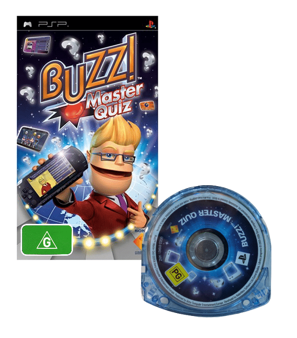 Take the popular game show host Buzz! on the road with Buzz!: Master Quiz for the PSP (PlayStationPortable)! Buzz!: Master Quiz includes all-new round types and over 5,000 questions on topics including music, celebrities, TV, sports, science, nature, movies and more, putting your knowledge to the test at home or on the move. Play different quiz challenges by yourself, or enjoy the 3 new multiplayer modes(Pass Around, Fastest Finger, or Quiz Master) with your family and friends. Get ready to Buzz!-in today.