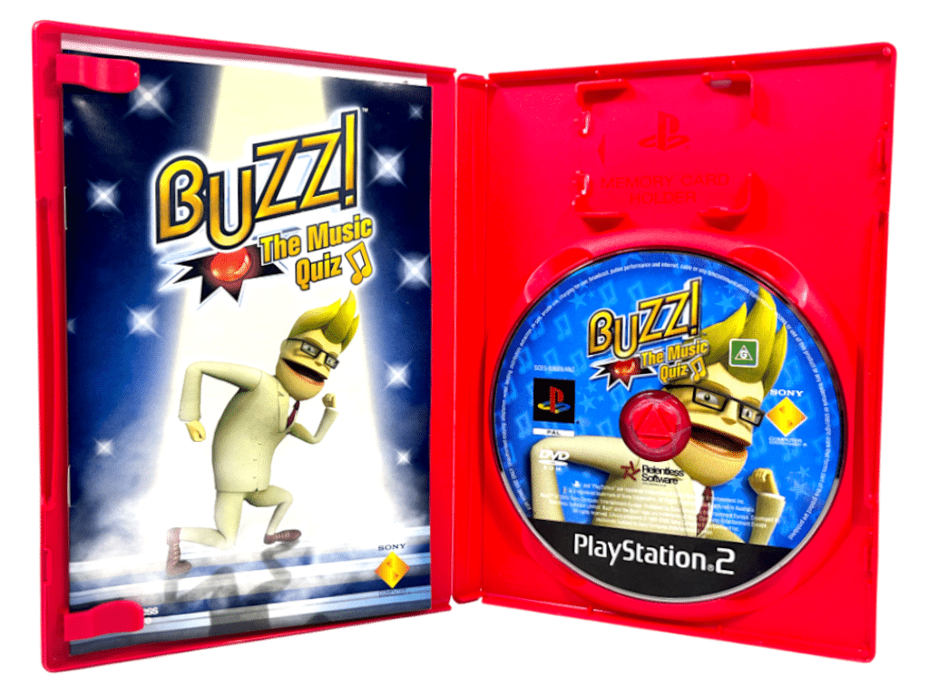 BUZZ! The Music Quiz is a party trivia game for the PlayStation 2 that tests players’ knowledge of music across decades and genres. Using the unique Buzz! buzzers, players compete in a game-show style experience hosted by the charismatic and humorous quizmaster, Buzz. The game features thousands of music-related questions, video clips, and sound bites, creating a lively and entertaining atmosphere perfect for multiplayer sessions. With its accessible controls and fun presentation, BUZZ! The Music Quiz quickly became a staple for family gatherings and parties.