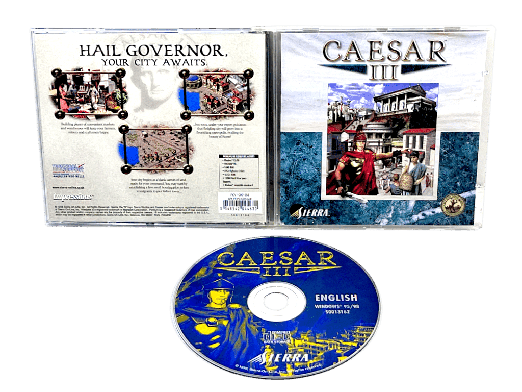 Caesar III (PC). This preowned game disc is in excellent condition and includes pictured case + contents. Case has some minor wear and tear. Please NOTE that as a preowned PC game, this game may require a new Steam code or key code purchased online in order to unlock the game. Refer photographs.