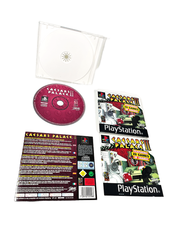 Caesars Palace II recreates the thrill of Las Vegas with 20 classic casino games including blackjack, roulette, poker, slots, and more. Explore luxurious casino floors, manage your winnings, and try your luck at a huge variety of games of chance. Ideal for fans of casino-style gameplay or collectors seeking a unique PS1 simulation title.