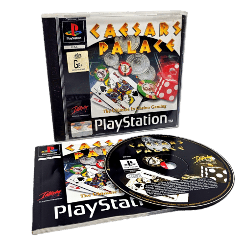 RARE FIND: Excellent Condition & 100% Complete with Contents: Caesars Palace for SONY Playstation 1 / PS1. This preowned game is in pristine condition – a tidy and complete collector’s item – with original case, covers (both front and reverse cover slips), manual / booklet and game disc. This is the PAL region copy of the game. Add this to your collection today and display it proudly!