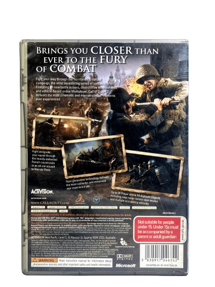 The follow-up to the #1 next-generation game, Call of Duty 3 delivers the intensity of being closer than ever to the fury of combat during the Normandy Breakout, the historic campaign that made the liberation of Paris possible and brought the Allies a step closer to Berlin. Through a seamless narrative that delivers the rush of unrelenting battle and breathtaking action, players assume the roles of four ordinary Allied soldiers—American, British, Canadian and Polish—and are thrust onto an authentic, living battlefield for an unprecedented variety of combat, with advanced high-definition graphics, detailed character animations and explosive on-screen action, delivering the most immersive and cinematically intense war experience ever.