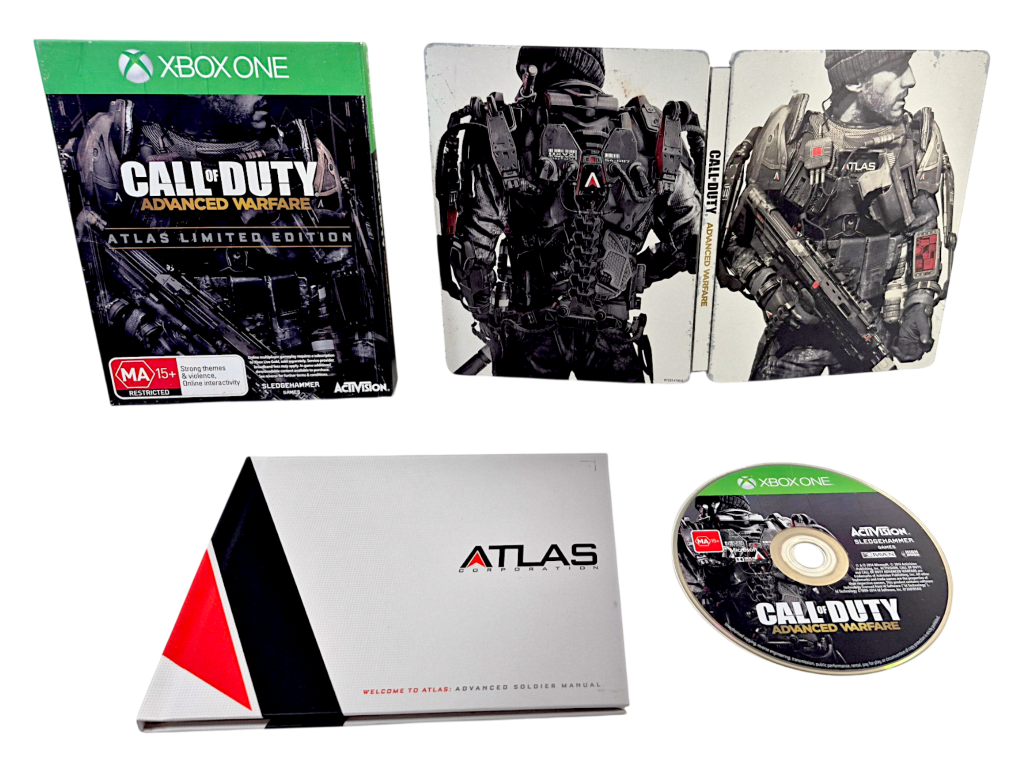 DESCRIPTION: Call of Duty: Advanced Warfare introduces exo-suit movement, adding verticality and speed to combat with boosts, dashes, and enhanced mobility. The Atlas Edition includes physical collectibles and bonus content, making it highly desirable for collectors. The campaign features a strong cinematic presentation, while multiplayer benefits from the new movement system to create dynamic matches. Combined with its futuristic setting and refined gunplay, it stands out within the series. A great addition for both Call of Duty fans and collectors looking for a premium Xbox One edition.