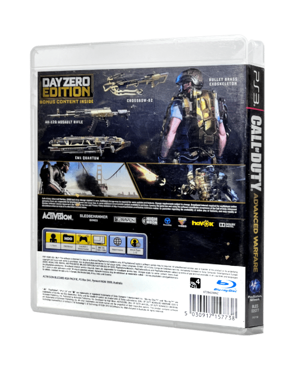 RARE GENUINE PS3 DAY ONE EDITION in excellent condition & 100% complete with contents: Call of Duty Advanced Warfare Day 1 Edition for SONY PlayStation 3 / PS3. This preowned game is in superb condition and includes case, cover, manual / booklet, leaflet, and game disc.