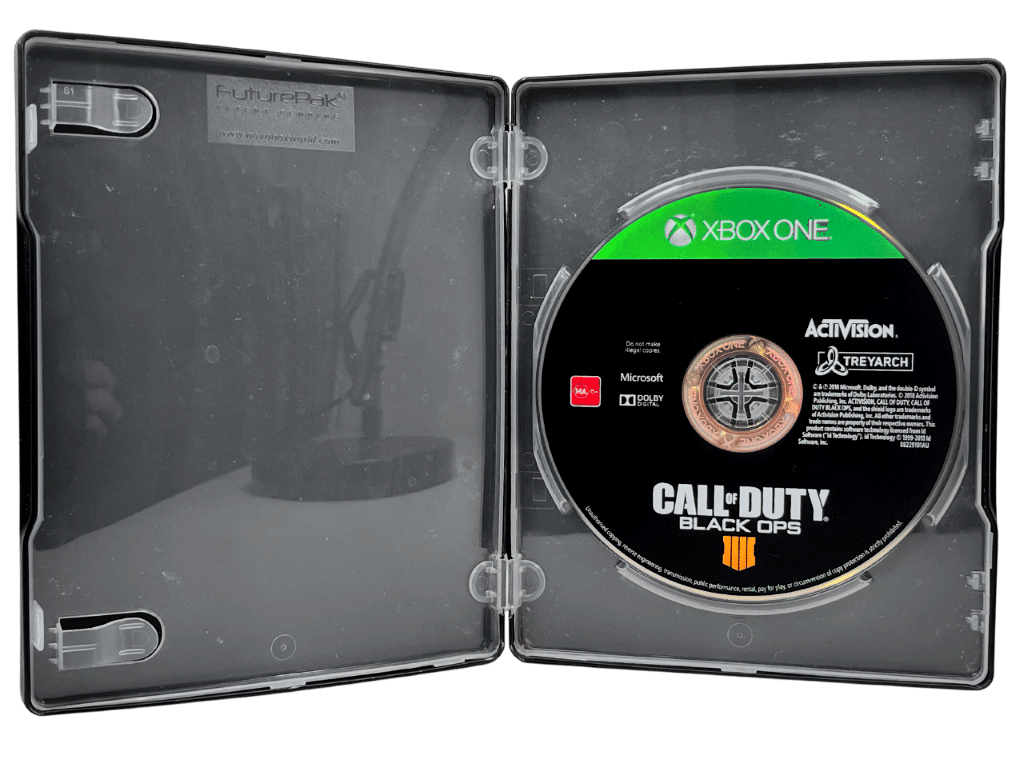 Rare Limited Edition Steel Collector’s Release: Call of Duty Black Ops 4 / Black Ops IV / BO4 for XBox One. This preowned authentic Limited Steelbook Collector’s Edition includes the game disc in excellent condition, and the steelbook in good condition with pictured cosmetic imperfections.