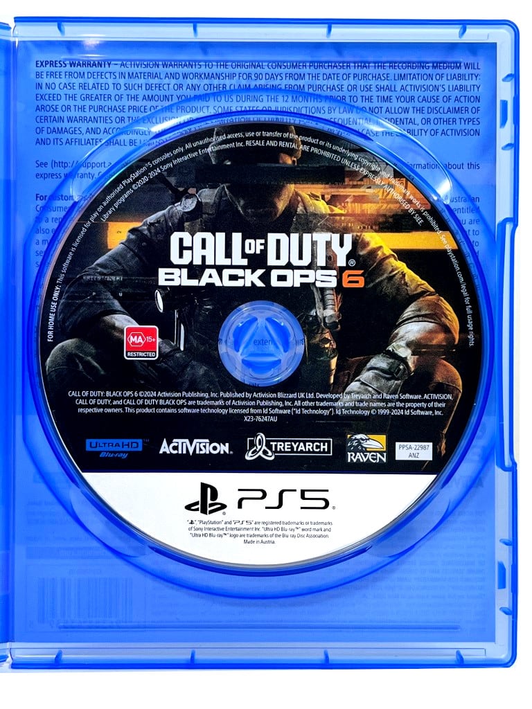 CALL OF DUTY BLACK OPS 6 for SONY PlayStation 5 / PS5. Preowned in mint condition (like new) and complete with case + cover + game disc.