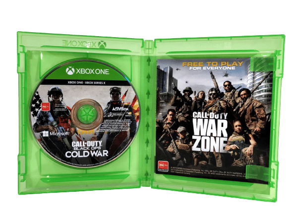 Excellent condition & 100% complete with contents: Call of Duty Cold War / Call of Duty Black Ops Cold War for XBox One. This preowned game comes complete with case, cover, carded insert, and game disc.