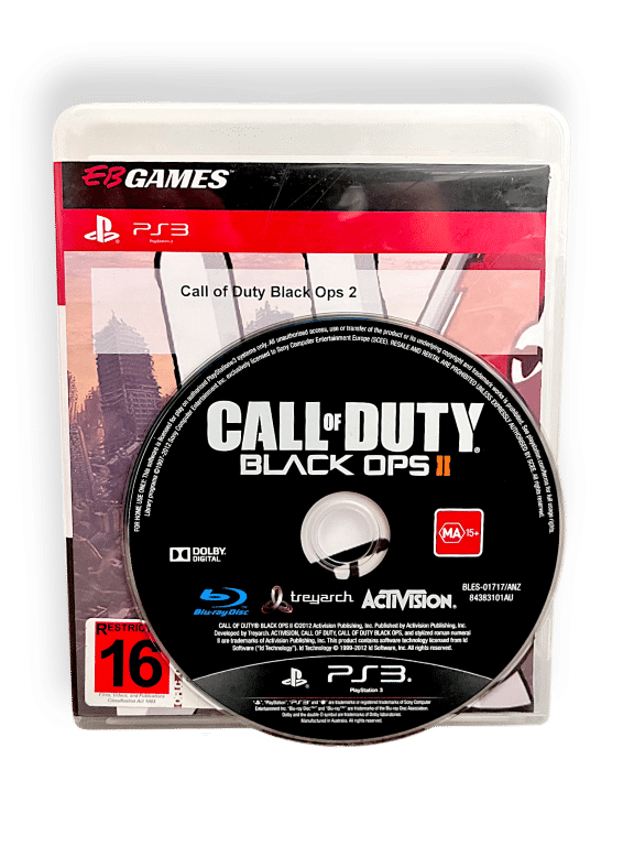 Call of Duty: Black Ops II (PlayStation 3 – Disc in EB Games Case). This pre-owned Sony PlayStation 3 game is in excellent condition, and the disc comes inside the pictured EB Games case. Note that the original case is not included here.