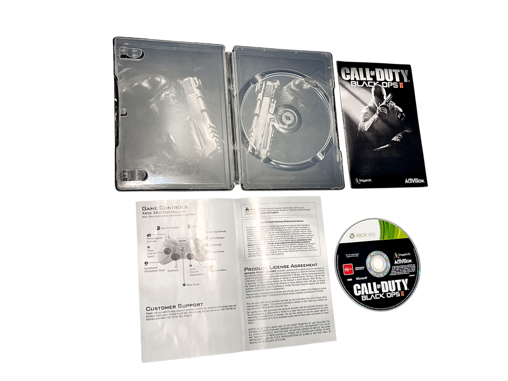 Call of Duty: Black Ops II (Xbox ONE) COLLECTOR’S STEEL CASE EDITION. This preowned game includes each of the Steel Collector’s Case + Promo Card + Game Disc. GAME PLAYS ON XBOX ONE ONLY (NOT XBOX 360). Ring scratch means it’s only plsyable on Xbox One.
