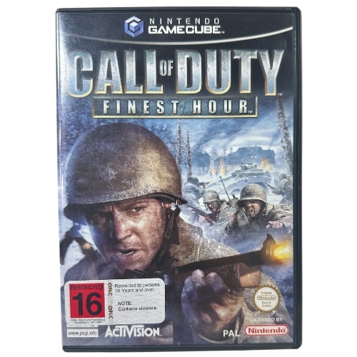 Nintendo GameCube game in excellent condition Call of Duty: Finest Hour for Nintendo Gamecube. This preowned game comes complete with case + cover + manual / booklet + game disc. Very fine superficial scratches on disc, but these are mild and do not hinder game play in the slightest.