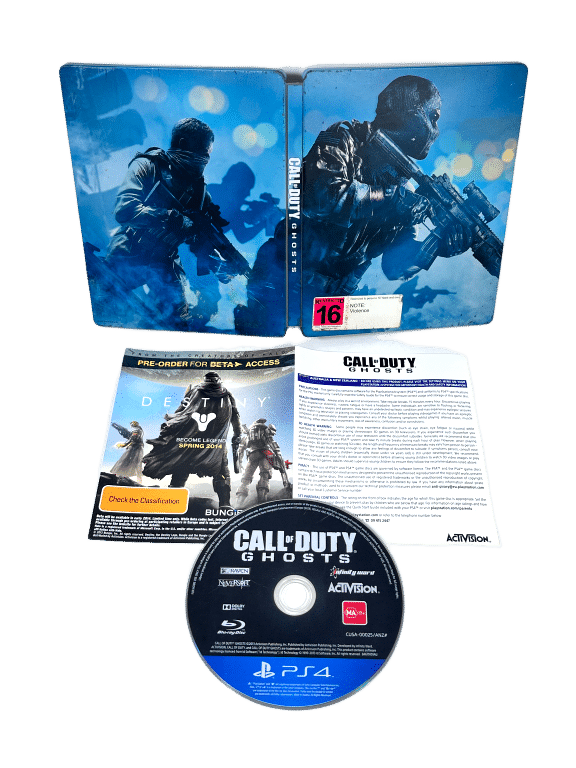 Similar games each sold separately: COD Advanced Warfare, COD Infinite Warfare, Battlefield 4, Titanfall 2, Killzone Shadow FallThis Steelbook Edition includes the metal case, disc, inserts, and bonus material. Ghosts introduces new squads modes, large-scale multiplayer maps, and a dramatic campaign following a shattered nation’s fight for survival. A great pickup for Call of Duty collectors or players wanting a sturdy Steelbook release with strong presentation and classic COD action.