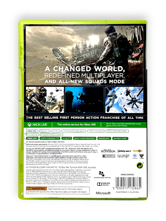 Call of Duty®: Ghosts is an extraordinary step forward for one of the largest entertainment franchises of all-time. This new chapter in the Call of Duty® franchise features a new dynamic where players are on the side of a crippled nation fighting not for freedom, or liberty, but simply to survive.