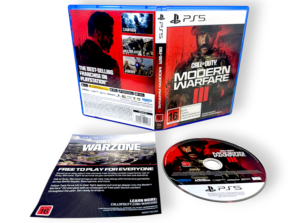 Call of Duty: Modern Warfare 3 (PS5). This preowned game is in excellent condition and includes pictured contents. Refer photographs.