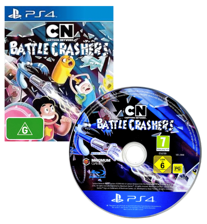 CARTOON NETWORK Presents: BATTLE CRASHERS for SONY PlayStation 4 / PS4. This preowned game disc is in good condition with light scratches only which do not hinder performance or game play in any way. Disc comes inside an empty blank case. Please note that the original case is NOT included.