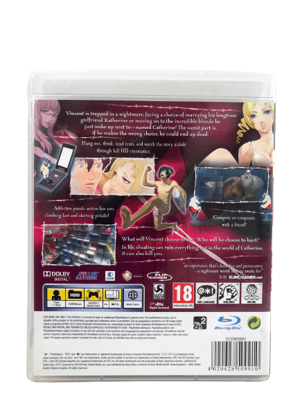 Rare and Collectible PS3 Game in Mint Condition: CATHERINE The Game for SONY PlayStation 3 / PS3. This preowned game is pristine and comes with case, cover and game disc. Please note listing is US print.