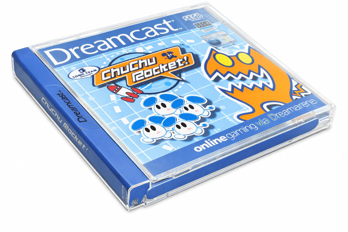 ChuChu Rocket! is a fast-paced puzzle game built around guiding frantic mice into rockets while avoiding mischievous cats. Simple mechanics hide surprisingly deep strategy, especially in competitive multiplayer modes. One of the Dreamcast’s standout online titles, it supports local and online play, making it a social and chaotic experience. Bright visuals, catchy sound effects, and endless replayability have earned it a cult following, and it remains one of the console’s most charming and accessible games.