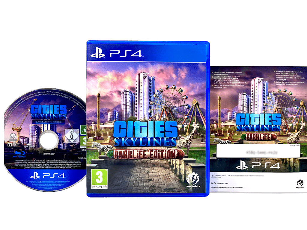 CITIES SKYLINES PARKLIFE EDITION for SONY PlayStation 4 / PS4. This game is in excellent condition and comes complete with case + cover + carded insert + game disc. Any single use paper vouchers are assumed no longer valid, but these were promotional add-ons only and are not required for gameplay or completion. The full Cities Skylines Parklife Edition game is included on the game disc.