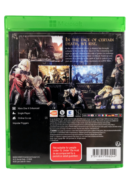 MINT Condition & 100% Complete with Contents: CODE VEIN for XBox One. This preowned game presents As New – complete with Case, Cover, Leaflet, and Game Disc. A very tidy collector’s item.