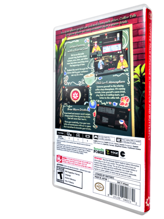 Coffee Talk Volume 2: Hibiscus & Butterfly (Switch) *RARE*. This preowned Nintendo Switch game is in Mint Condition and complete with original case and contents pictured. A very tidy and complete collector’s item.