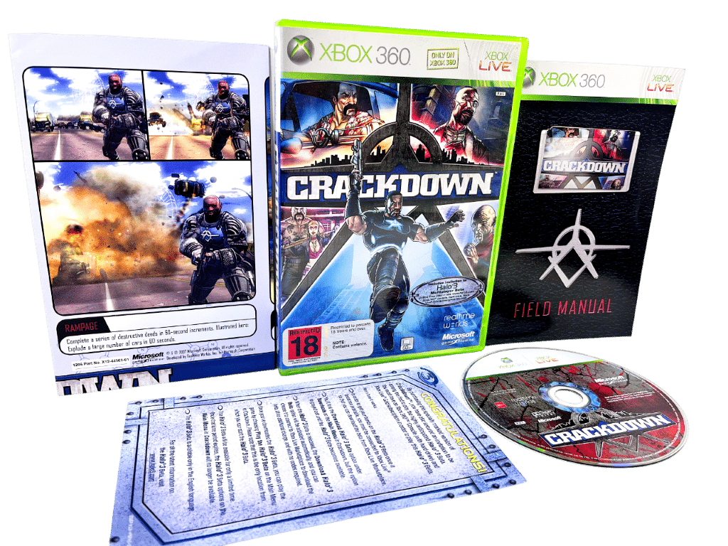 Excellent condition & 100% complete with contents: CRACKDOWN / Crack Down for Xbox 360. for XBox 360. This preowned game is in fine condition and includes the game disc + manual + map + cover + case.
