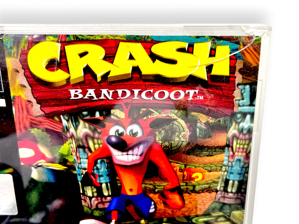 Crash Bandicoot (PS1). This preowned game is in good condition and complete with pictured case + cover + manual / booklet + game disc. Front plastic panel of the case has a small plastic crack, booklet some mild paper creasing, and the disc some very mild markings and faint surface scratches, but these purely cosmetic imperfections which do not affect gameplay or performance in the slightest. Refer photographs from a number of angles.