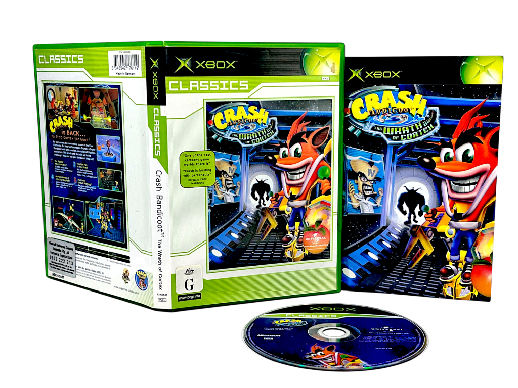 Crash Bandicoot The Wrath of Cortex (Xbox) *EXCELLENT & COMPLETE*. This preowned game is in excellent condition with only mild disc surface imperfections, and includes pictured contents. Refer photographs.