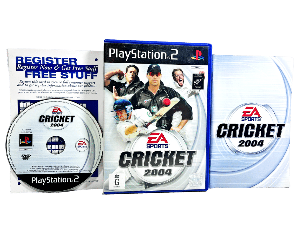 Excellent condition & 100% complete with manual: EA Sports presents CRICKET 2004 for SONY PlayStation 2 / PS2. This preowned game is in superb condition – complete with case, cover, manual / booklet, and game disc. Case has some fine laminate plastic wear, but this is cosmetic only, and each of the internal contents are Mint.