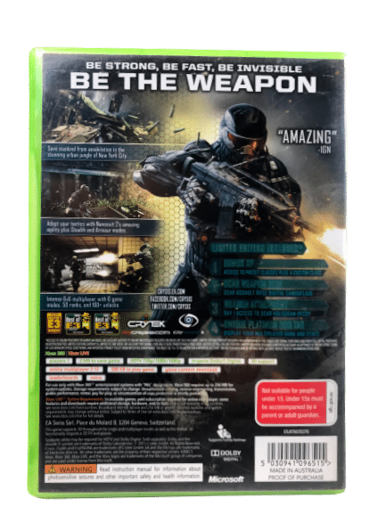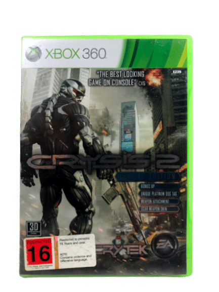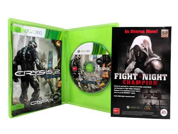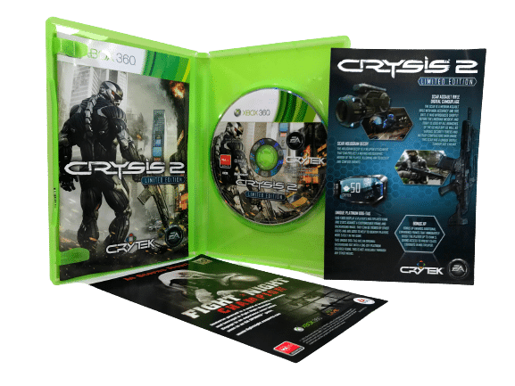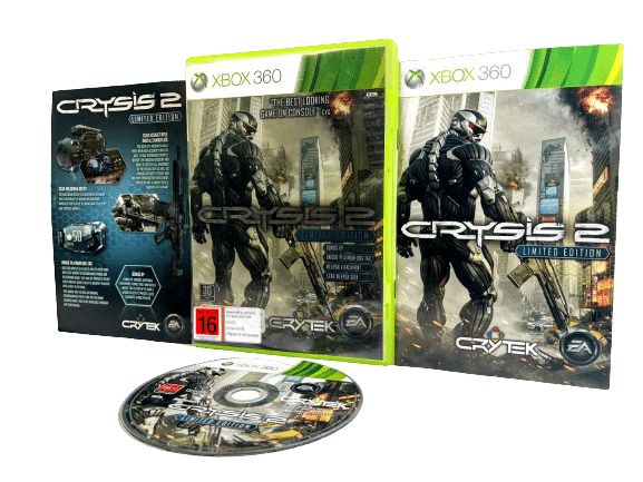 RARE FIND: GENUINE LIMITED EDITION with Official Limited Edition Game Disc with bonus content included on the disc itself: CRYSIS 2 LIMITED EDITION / Crysis II Limited Edition / Crisis 2 Limited Edition for XBox 360. This preowned game disc is in excellent condition and comes complete with case + cover + manual / booklet + game disc. Case has some surface laminate wear where price stickers have been removed, and has a small plastic crack, but this is purely cosmetic, and the contents inside are near-mint.