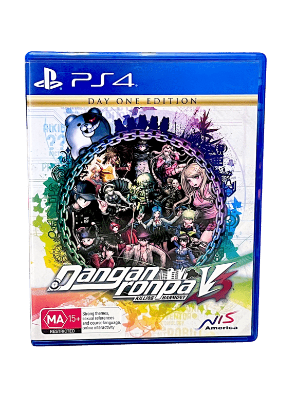Danganronpa V3: Killing Harmony – Day One Edition (PS4). This pre-owned Sony PlayStation 4 game is in excellent condition and complete with pictured case, cover, and game disc.