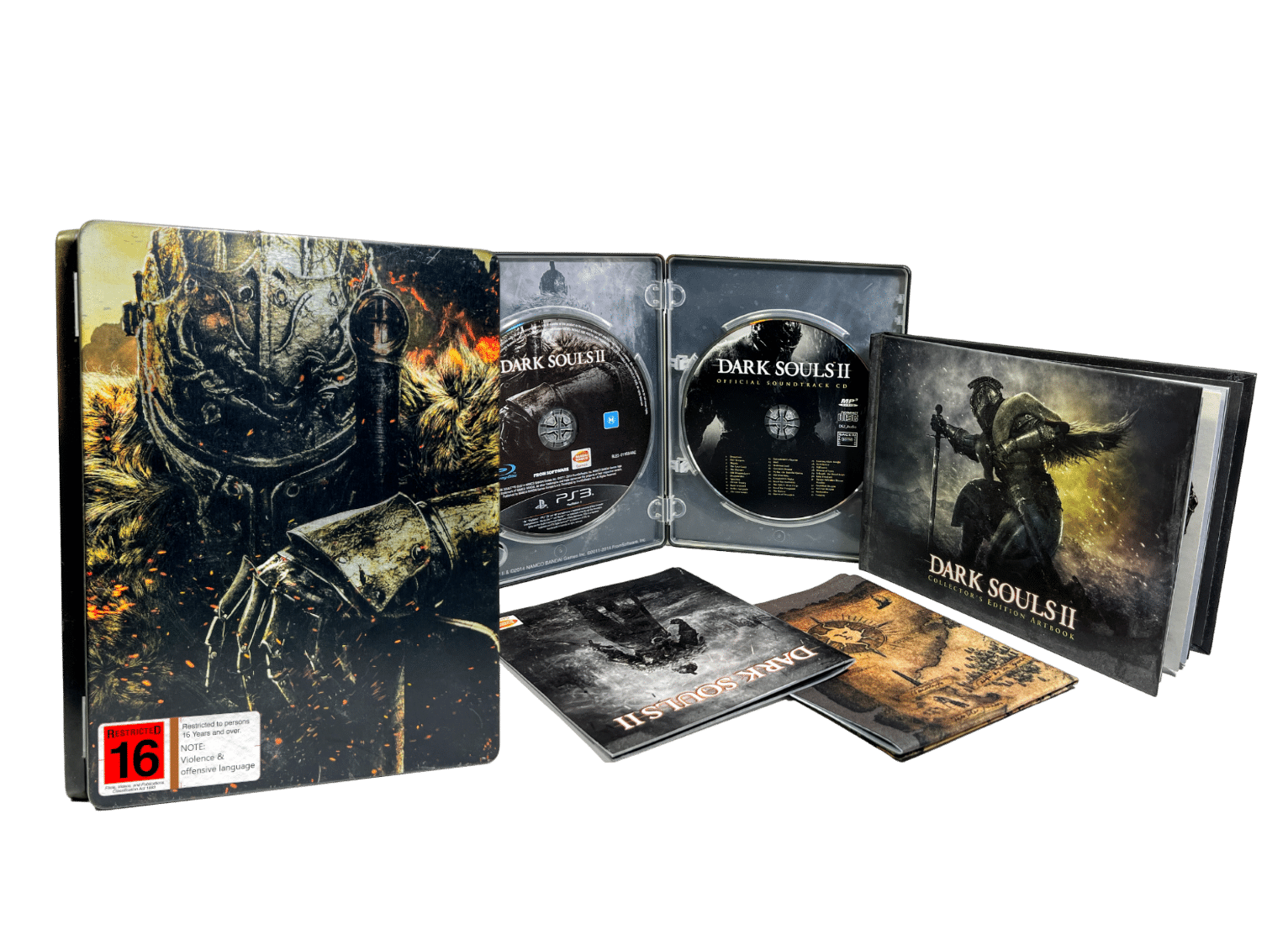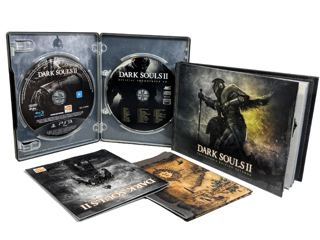 Rare & Collectible Limited Edition: DARK SOULS II COLLECTOR’S STEEL EDITIION / Dark Souls 2 COLLECTOR’S EDITION for SONY PlayStation 3 / PS3. This preowned authentic Limited Steelbook Collector’s Edition is in mint condition and includes: