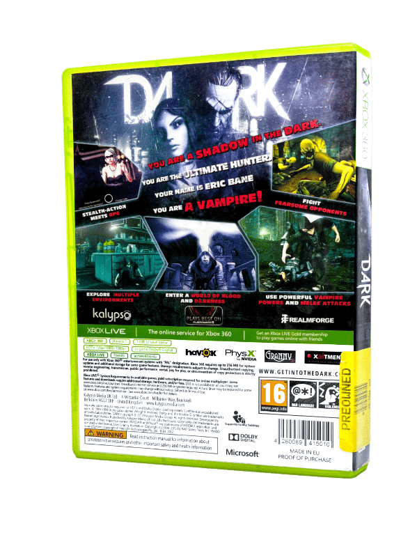 RARE & Collectible Xbox 360 Edition in Excellent Condition & 100% Complete with Contents: DARK for XBox 360. This preowned game is in pristine condition and comes complete with case + cover + manual / booklet + game disc. Price sticker on spine of cover pictured, but this is cosmetic only, and all contents are superb. A tidy and complete collector’s item. Refer photographs.
