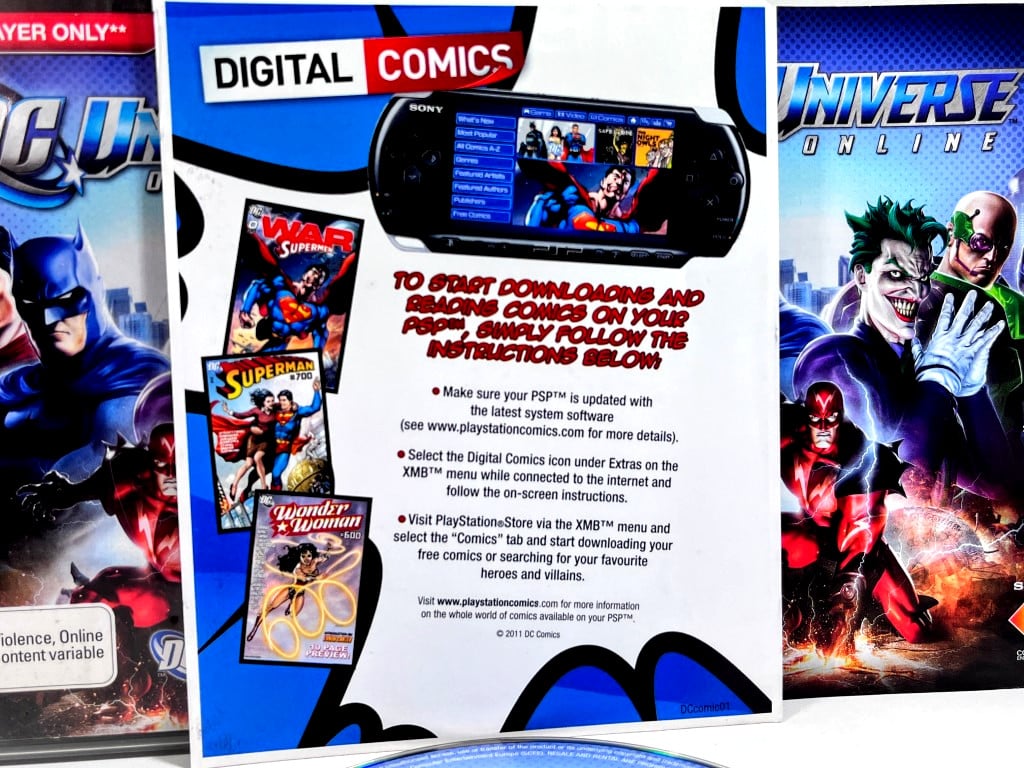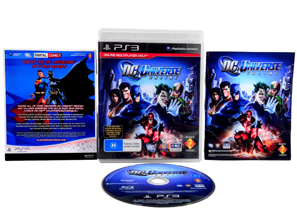 RARE & Collectible PS3 game (which is no longer playable but is a genuine collector’s item): DC Universe Online for SONY PlayStation 3 / PS3. Excellent Condition. NOTE: This is a collector’s item only and is no longer playable since SONY removed the online DC Universe servers. This preowned collector’s item comes complete with case + cover + manual / booklet + official DC Universe online carded insert – each in Excellent Condition. A tidy and complete collector’s item. Refer photographs.