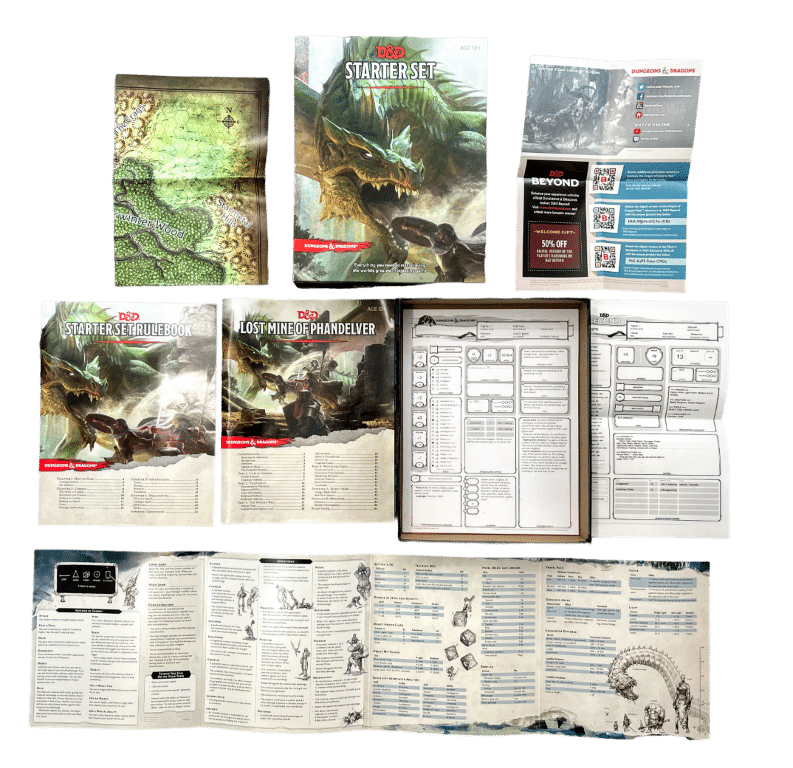 The Dungeons & Dragons Starter Set is your gateway to action-packed stories of the imagination. This box contains the essential rules of the game plus everything you need to play heroic characters on perilous adventures in worlds of fantasy.
