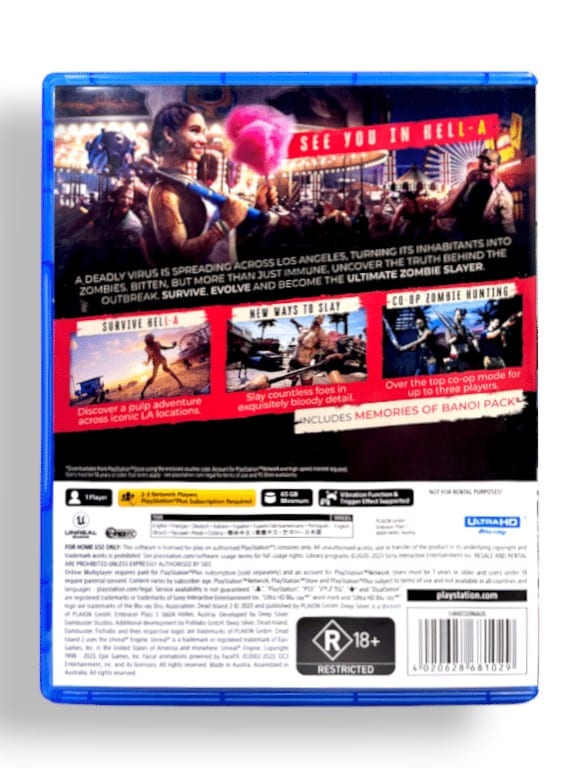 Dead Island 2 for SONY PlayStation 5 / PS5. Preowned, but in mint condition and complete with case + cover + carded insert + game disc. Any single use paper vouchers are assumed no longer valid, but these were promotional downloads only and are not required for gameplay or completion. The FULL Dead Island 2 game is included on the game disc.