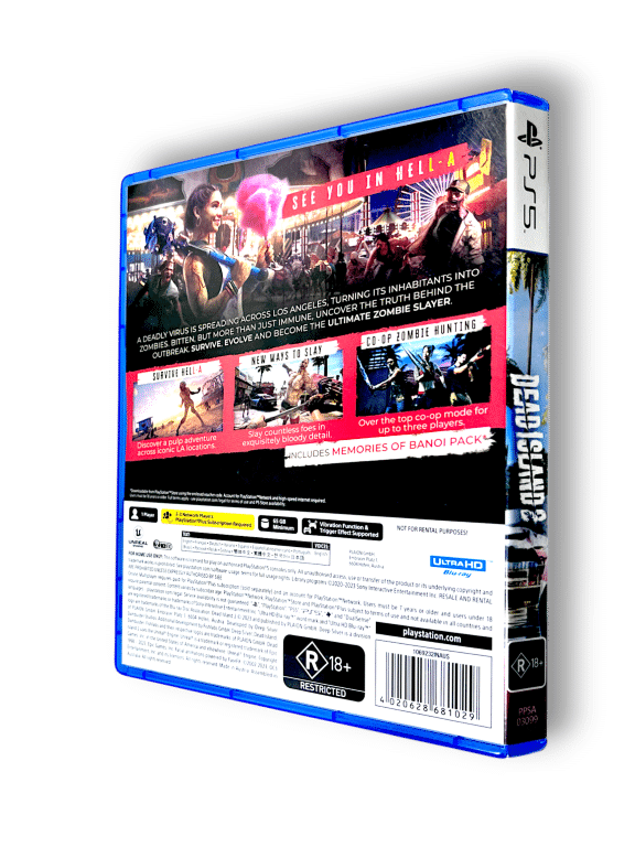 - A Cinematic Co-op Adventure – As a proper RPG experience, Dead Island 2 offers plenty of exciting quests, a crazy cast of characters, and a thrilling pulp story, to truly immerse you in its twisted universe. Re-playability is guaranteed. Add an over-the-top co-op mode for up to three players, and you’ll stay in LA for a very long (and gory) trip.