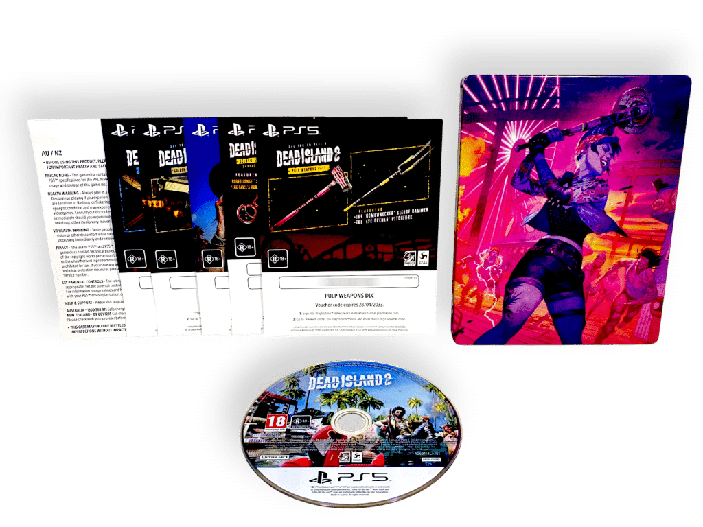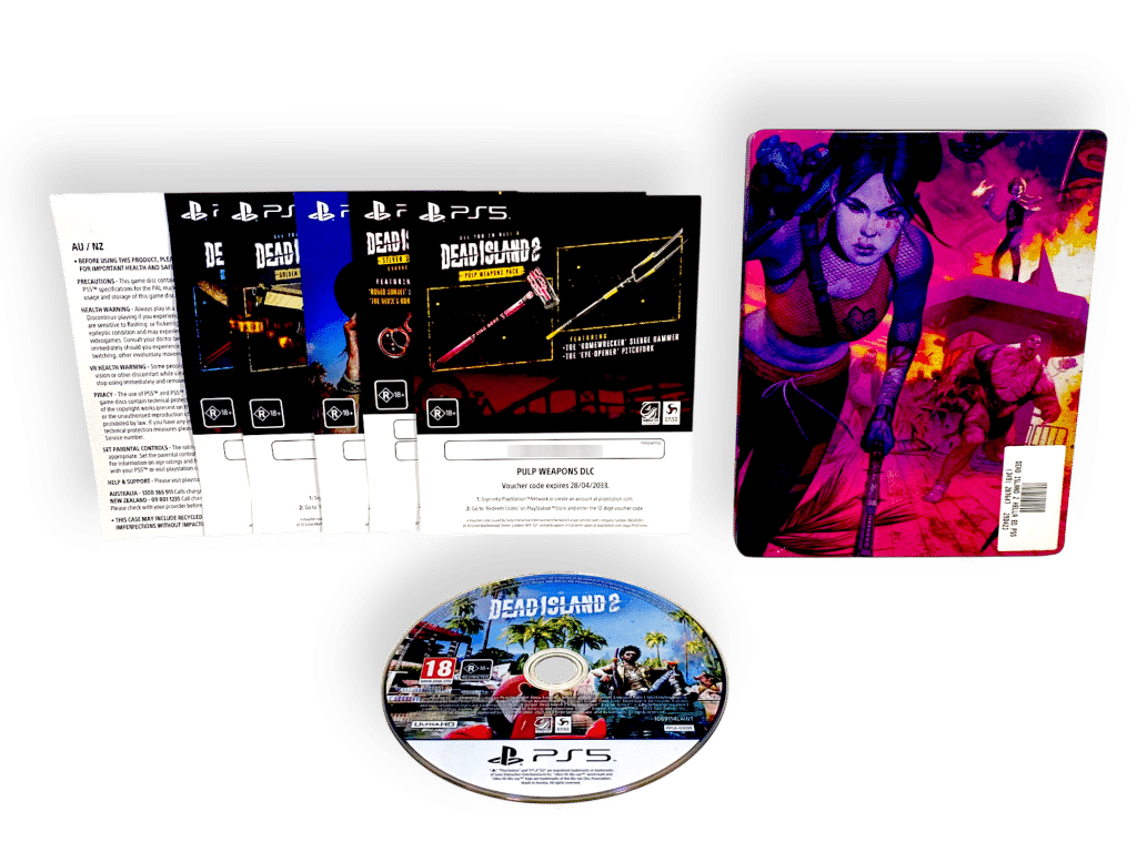 Dead Island 2 – Pulp Weapons Pack Edition (PS5). This preowned SONY PlayStation 5 game (PS5 game) is in excellent condition and complete with original case + cover + game disc.+ any other pictured booklets / contents. Note that this game is preowned so any single use voucher codes may no longer be valid. The full Dead Island 2 game is included on the game disc.