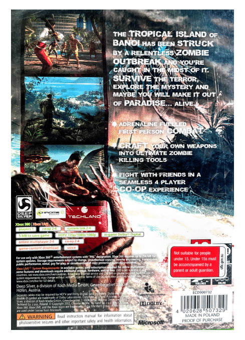 DEAD ISLAND for Xbox 360. This preowned game disc is in excellent condition and comes inside case with EB Games paper cover (not original paper cover).